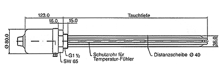 | Artikel-Nr. | Tauchtiefe (Einbaulänge) (mm) | Spannung (Volt) | Leistung (Watt) | Oberflächen- belastung (W/cm²) | Gewicht (kg) |